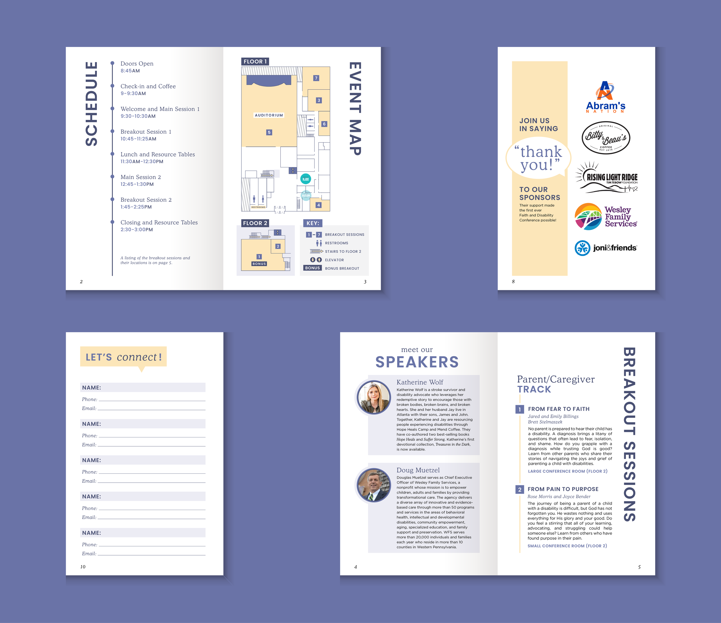 Additionally, I designed and helped order event materials. Every detail, from welcome bags and programs to screen graphics and directional signage, reinforced the conference’s core message of inclusivity.