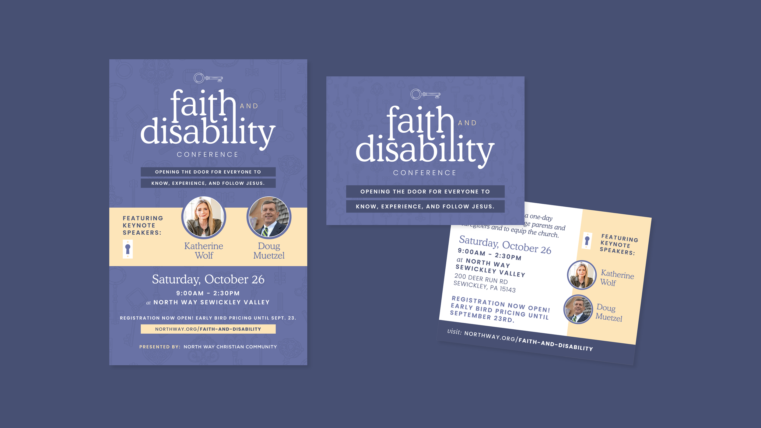 As the senior designer, I was responsible for crafting the entire brand identity. I created an inviting and friendly aesthetic to contrast the heaviness of some conference topics. The logo features keys to symbolize unlocking tools to better support a community often neglected, while a relaxed color scheme was chosen to create a sensory-friendly environment.